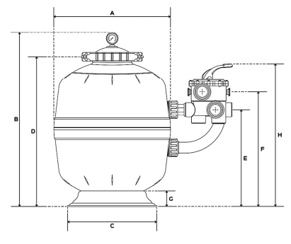 • เครื่องกรองทรายสำหรับสระว่ายน้ำแบบมัลติพอร์ตวาล์วด้านข้าง (Side Mount)