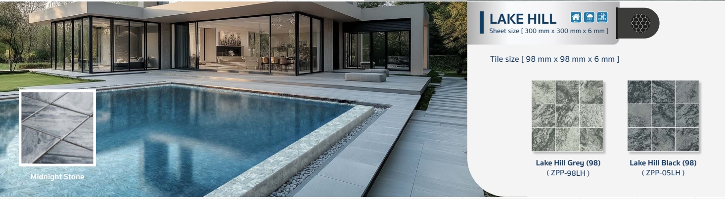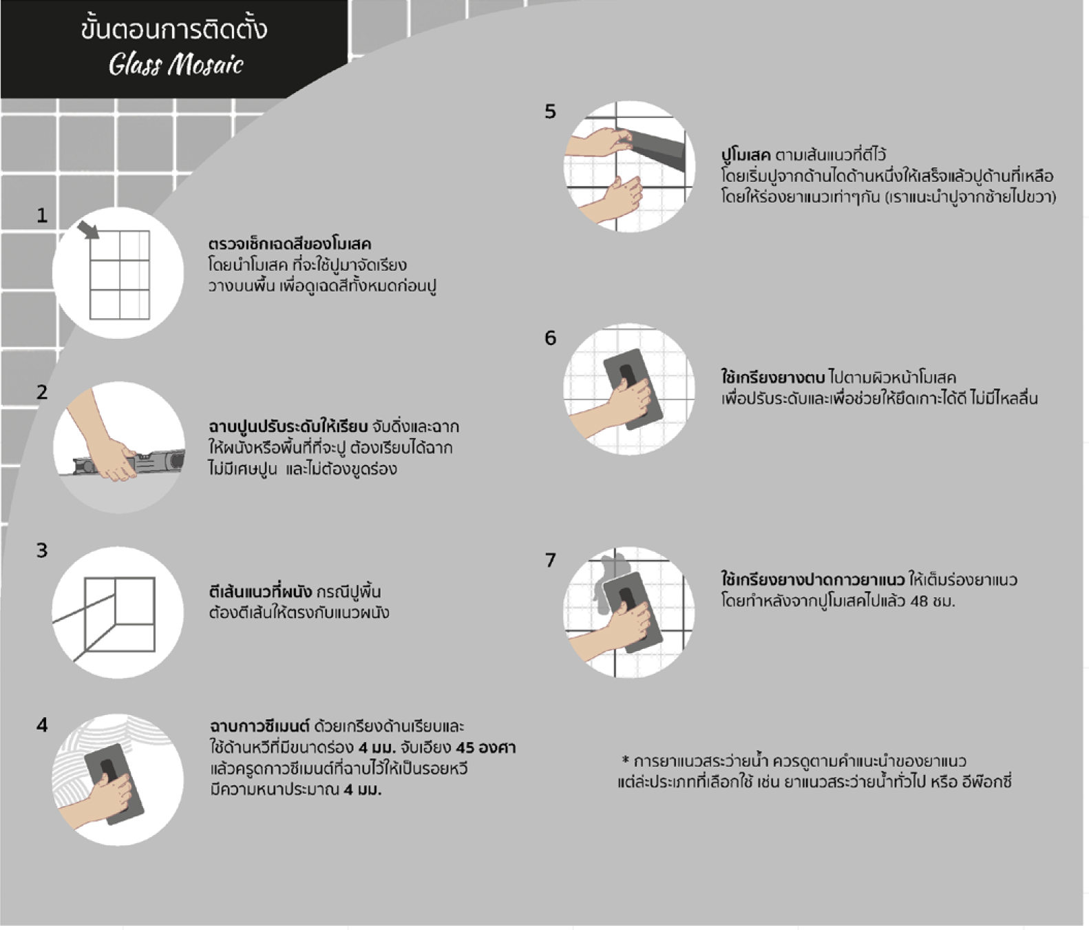 Sheet size : 300 mm x 300 mmx 6 mm Tile size : 98 mm x 98 mm Thickness : 6 mm 1 กล่อง /1 ตารามเมตร / 11 แผ่น
