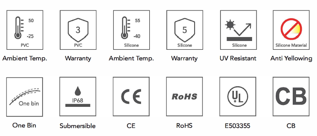 • วัสดุ: PVC หรือ Silicone ที่ทนต่อสภาวะแวดล้อมรุนแรง