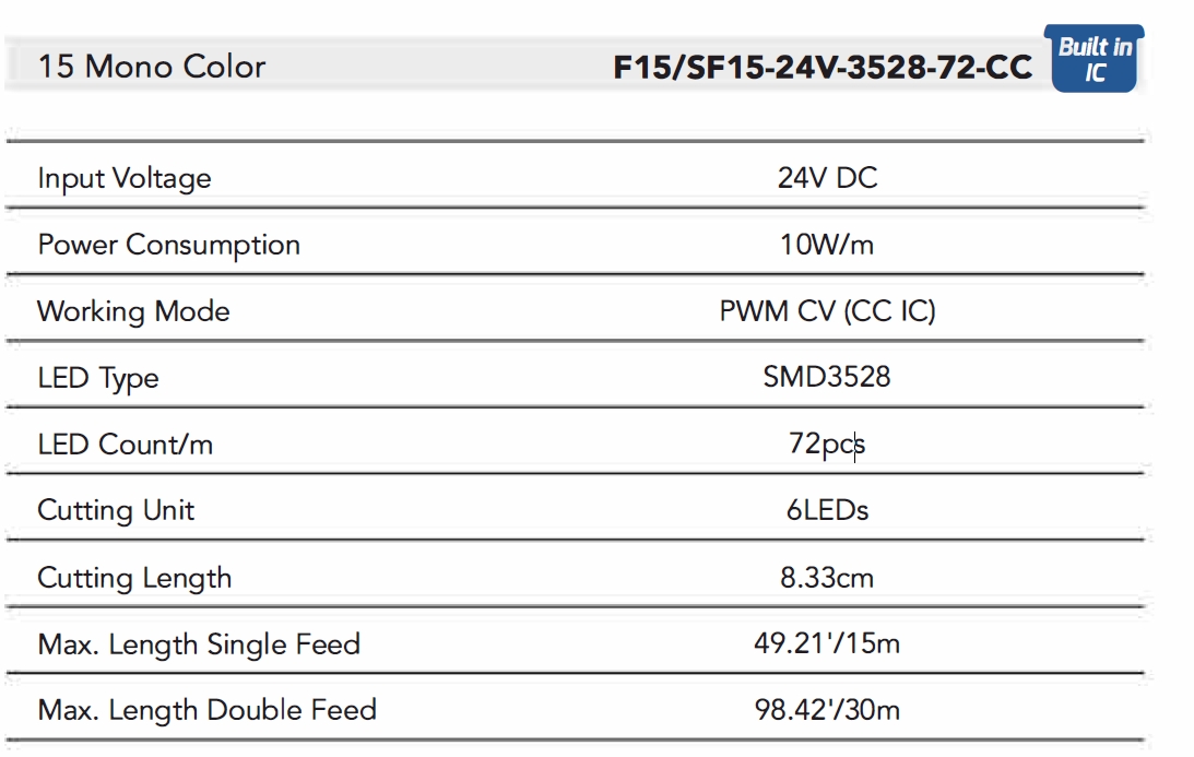 • จำนวน LED ต่อเมตร: 72 ชิ้น