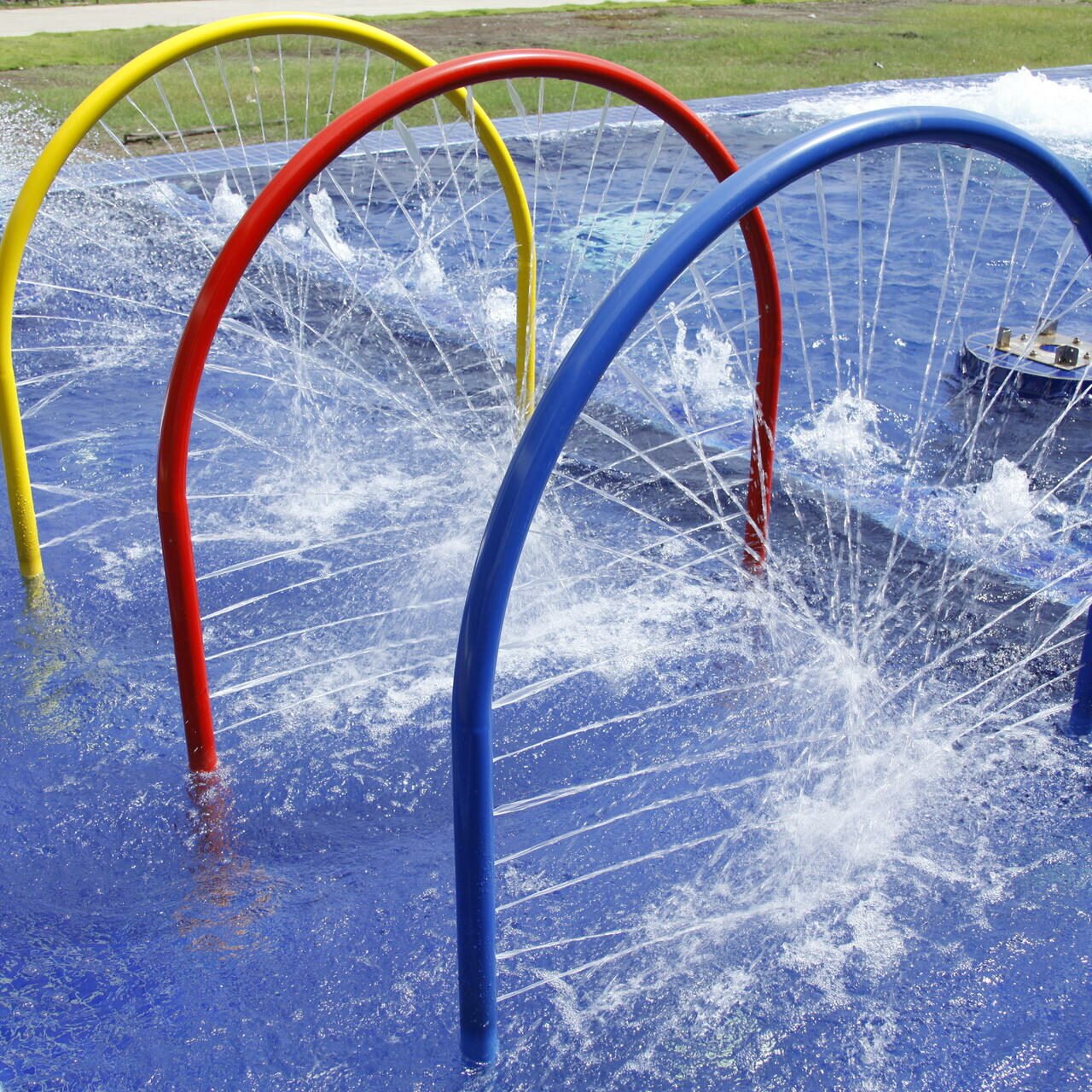ห่วงฉีดน้ำในสวนน้ำเป็นอีกหนึ่งลูกเล่นของการเล่นน้ำแบบมีปฏิสัมพันธ์ ซึ่งมักออกแบบมาเพื่อการเล่นและความสนุกสนาน โดยเฉพาะในลานน้ำพุหรือโซนน้ำตื้น ประกอบด้วยห่วงที่พ่นน้ำออกมา ช่วยให้เด็กๆ สามารถวิ่งผ่านหรือลอดใต้สายน้ำได้ ห่วงฉีดน้ำให้ความสนุกสนานที่ได้ออกแรง เป็นองค์ประกอบการเล่นน้ำที่ดึงดูดสายตาผู้คน