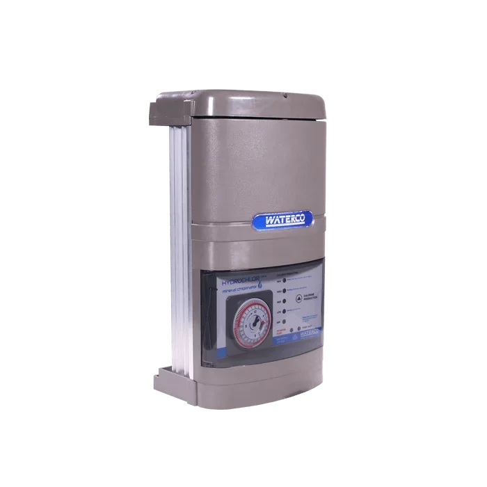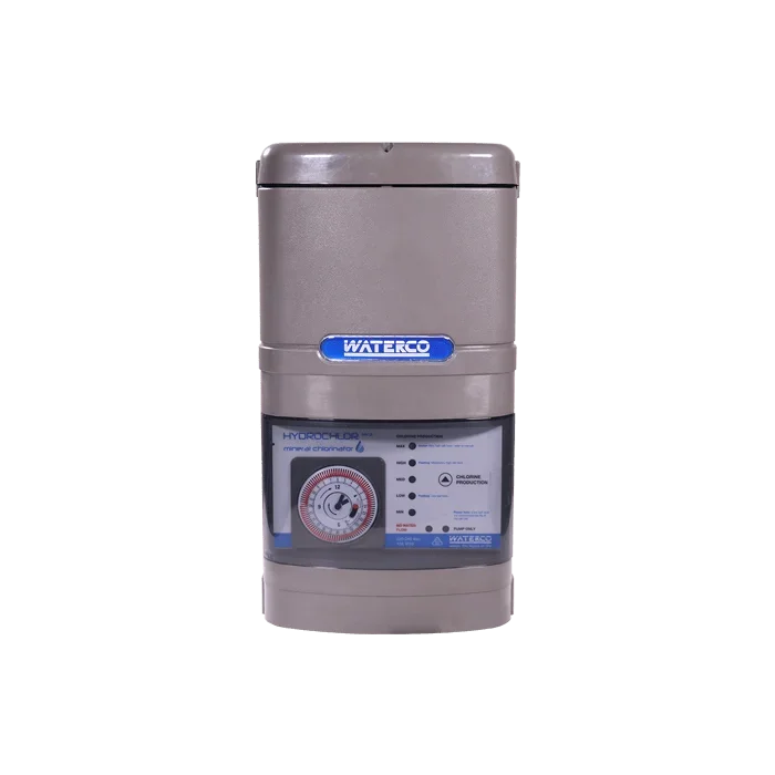 เครื่องผลิตคลอรีนจากเกลือHYDROCHLOR MK3 Mineral Chlorinator แบรนด์ Waterco ทำงานควบคู่ไปกับอุปกรณ์ต่าง ๆ ในระบบหมุนเวียนสระว่ายน้ำ และยังช่วยรักษาระดับคลอรีนในสระว่ายน้ำโดยอัตโนมัติ และเปลี่ยนให้สระว่ายน้ำระบบเกลือกลายเป็นสระว่ายน้ำบำบัดโอเอซิส ที่อุดมไปด้วยแร่ธาตุ ที่ดีต่อสุขภาพ